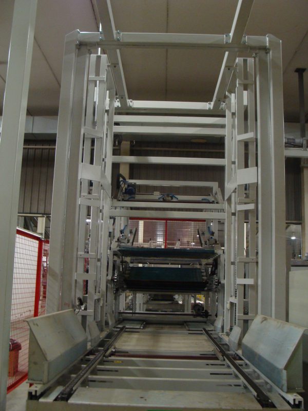 - Modulo despaletizador de box en parte inferior y paletizador en parte superior. Ascensor mediante fotocélula de control de hueco palas.